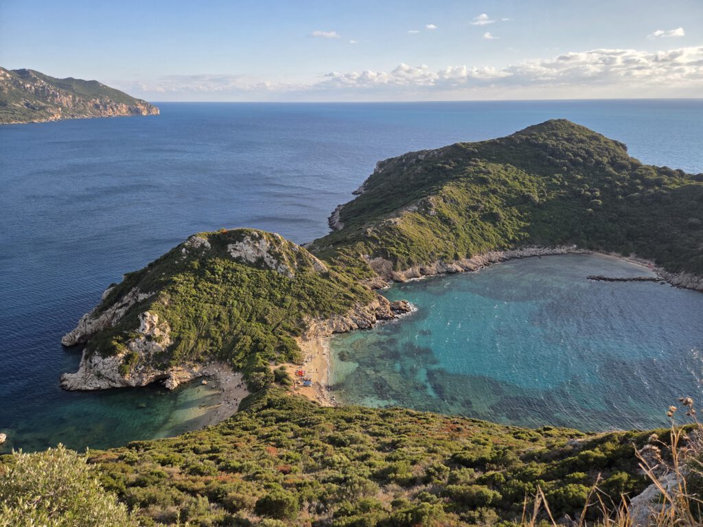Die Zwillingsbuchten von Korfu haben beide einen Kiestrand und das Wasser ist sehr klar. Ich selbst war nur oben auf dem Aussichtspunkt. Am Strand unten war ich nicht. Insgesamt vom Parkplatz bis zum Viewpoint ..paar Bilder geschossen und die Aussicht genossen und wieder zurück waren es insgesamt, eine Stunde. Ich bin gegen halb6 los und war gegen halb7 Abends zurück. Der Sonnenuntergang ist bald gewesen und ich bin noch in das Nah gelegene Restaurante gegangen. War sehr schön.